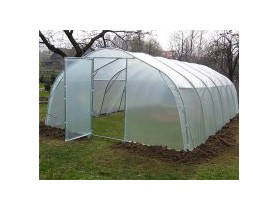 Stelaż tunelu ogrodniczego wykonany jest ze srebrnych rur metalowych (ocynk), śr. 25mm, składanych. Ściana przednia i tylnia wyposażona jest w składane, bardzo funkcjonalne i wyjątkowo proste w uzytkowaniu drzwi o wysokości 190 cm. Rozstaw pałąków co 1,20m. Folia ogrodnicza, którą są okryte ...
